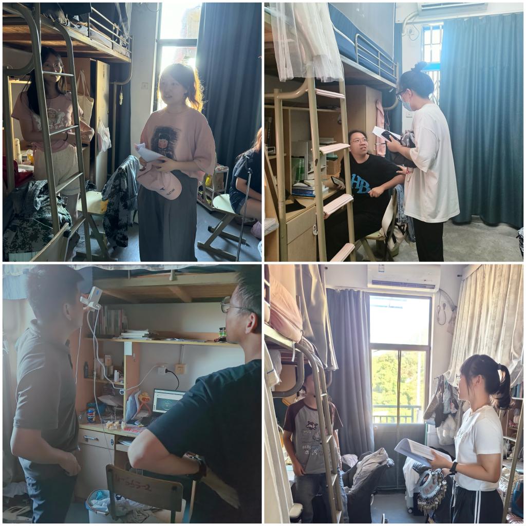 此次走访不仅是对学生假期动态的一次全面摸排,也是对寝室安全卫生管理的一次全面检查。同学们纷纷表示会牢记老师提醒,以饱满的精神面貌共同庆祝祖国75周年华诞。