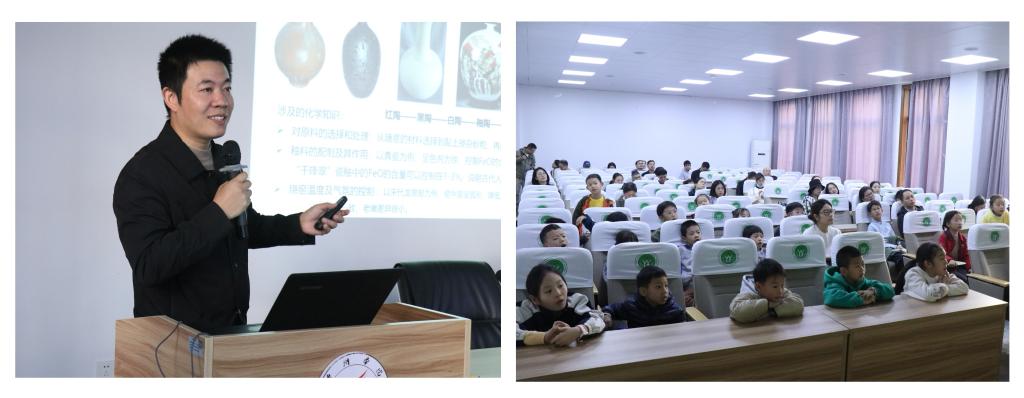 首先,台州市科技馆罗建群老师介绍了本次研学活动的具体安排和注意事项。接着,医化学院厉凯彬老师从一场《我们需要化学——化学改变生活》的趣味讲座拉开了本次研学营的序幕,通过生动的案例和现场互动,展示了化学的神奇魅力,引发了学员对于化学的浓厚兴趣。