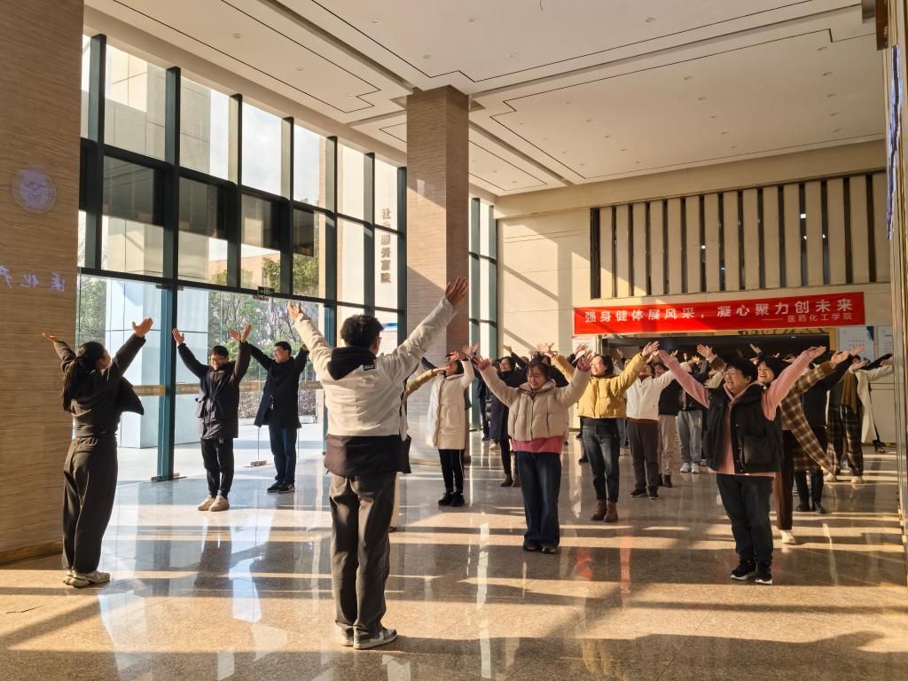活力工间操展风采。3月6日下午,学院教职工齐聚学院大厅,开展了一场别开生面的工间操活动。在领操员的悉心指导下,大家跟随节拍舒展身姿,动作整齐划一,笑容洋溢,现场氛围温馨而活跃,展现了教职工们昂扬向上的精神风貌。大家纷纷表示,这种短时高效的锻炼方式不仅有效缓解了工作的疲劳,还增进了同事间的交流与互动。