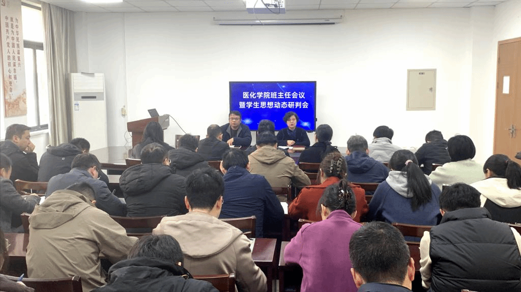 为进一步加强学生安全教育和管理,深入了解学生思想动态,3月20日下午,医化学院在学院党员之家召开班主任会议暨学生思想动态分析研判会,学院院长黄国波、党委书记徐元红出席,党委副书记刘贵花主持,各系室主任、全体班主任、辅导员参加会议。