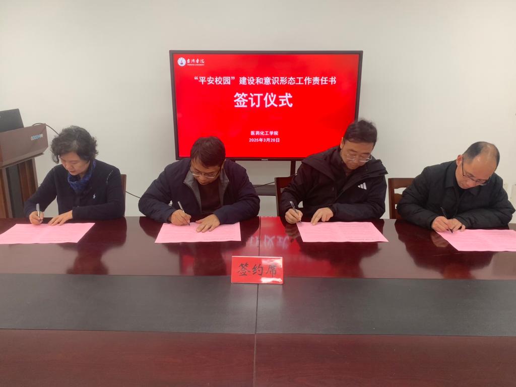 会议现场,黄国波、徐元红代表学院与9个系(室)主任签订了《医药化工学院“平安校园”建设和意识形态领域工作责任书》,进一步明确各系(室)在安全管理、意识形态阵地建设中的主体责任,形成“层层传导、分级落实”的责任链条。