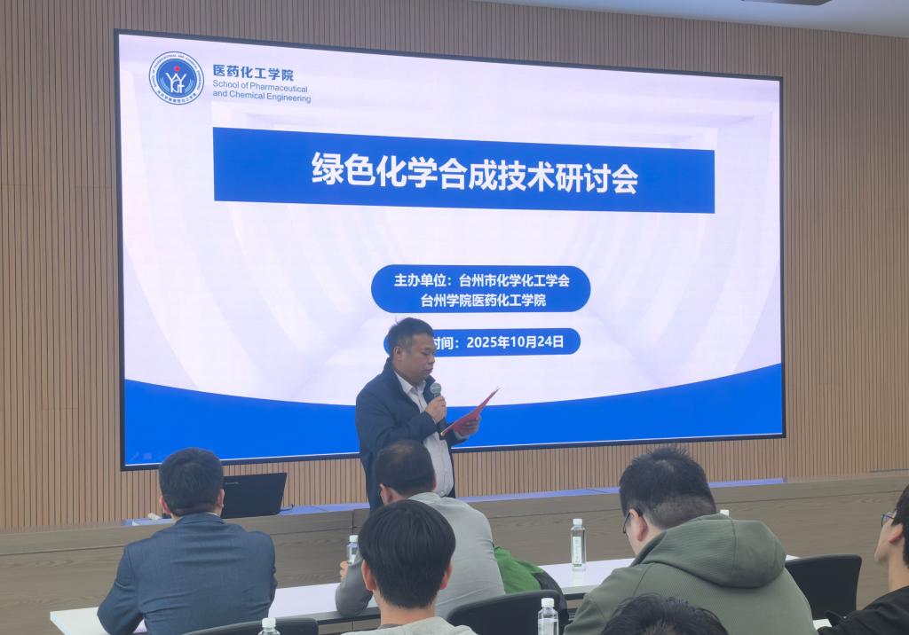10月24日下午,医药化工学院在科技综合楼220会议室顺利举办绿色化学合成技术研讨会。本次会议由台州市化学化工学会与台州学院医药化工学院联合举办,以“绿色合成·创新驱动·可持续发展”为主题,吸引了一众学科相关教师与研究生参与。会议由医药化工学院院长黄国波主持。