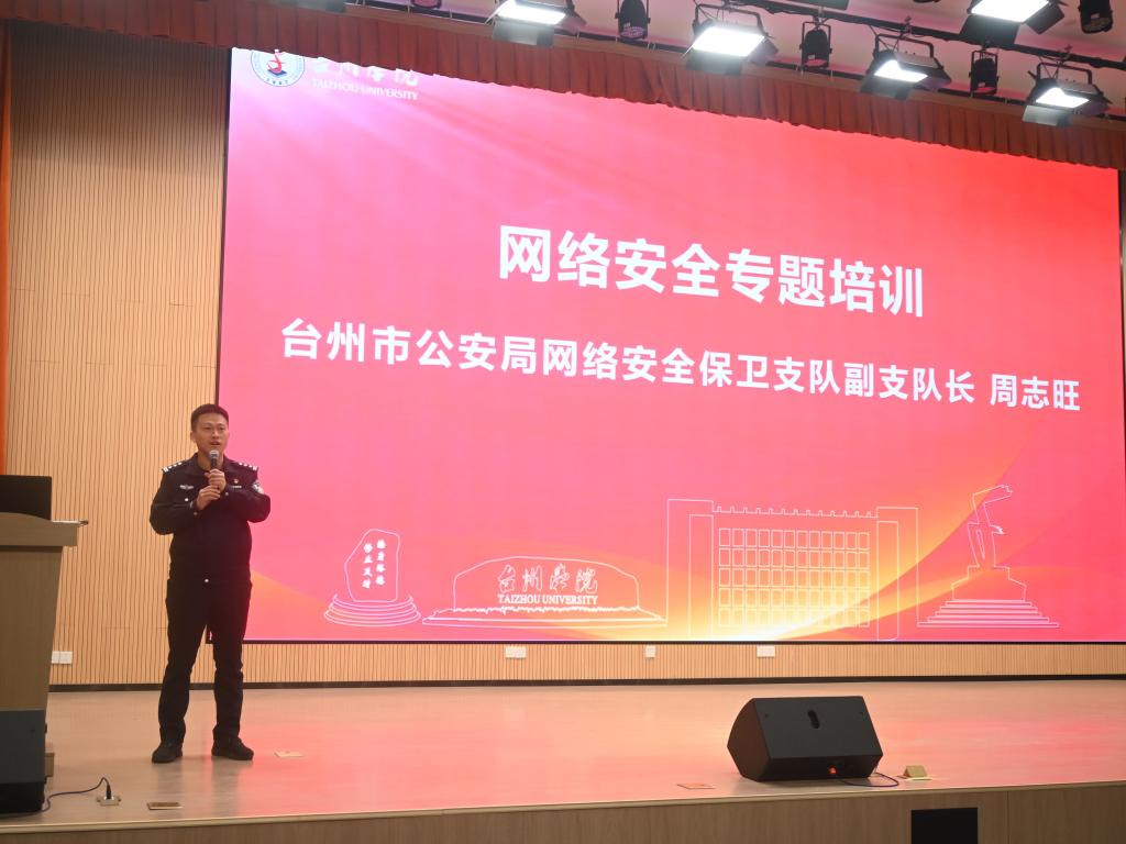为营造清朗文明的网络环境,增强学生的法治观念与网络安全意识,12月15日晚,医化学院在科技综合大楼328会议室举办“清朗网络·法治同行”网络安全主题教育。活动特邀台州市公安局网络安全保卫支队副支队长周志旺、椒江区公安分局葭沚派出所民警徐海亮、校安全保卫部办公室副主任叶挺婷作专题分享。校党委宣传部副部长翁添富出席活动,学院党委副书记刘贵花主持,学院全体辅导员及300余名学生共同参与。