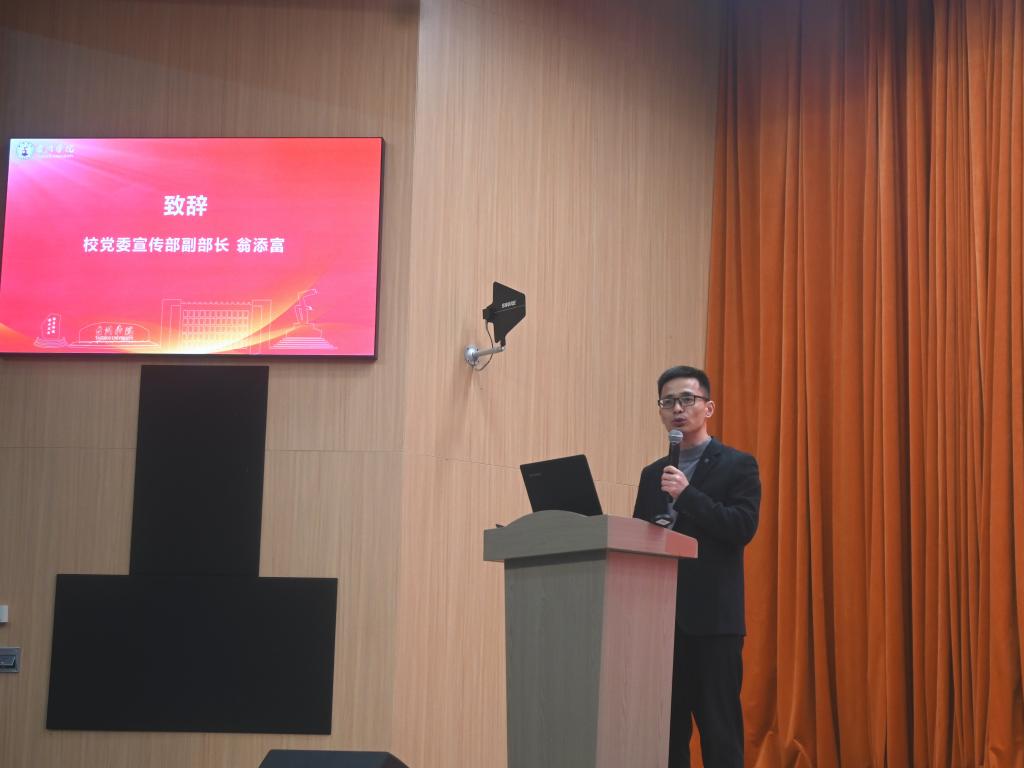 翁添富在致辞中强调,数字时代下,网络已成为师生获取信息、互动交流、拓宽视野的核心平台,学校始终将网络安全工作置于重要位置。维护网络安全绝非个体之事,而是全体师生的共同责任。他向同学们发出倡议:在善用网络助力学术科研、获取专业知识的同时,要牢固树立“法治思维”,自觉做网络秩序的遵守者;持续提升“安全素养”,主动做网络风险的防范者;切实强化“责任担当”,积极做清朗网络的建设者。