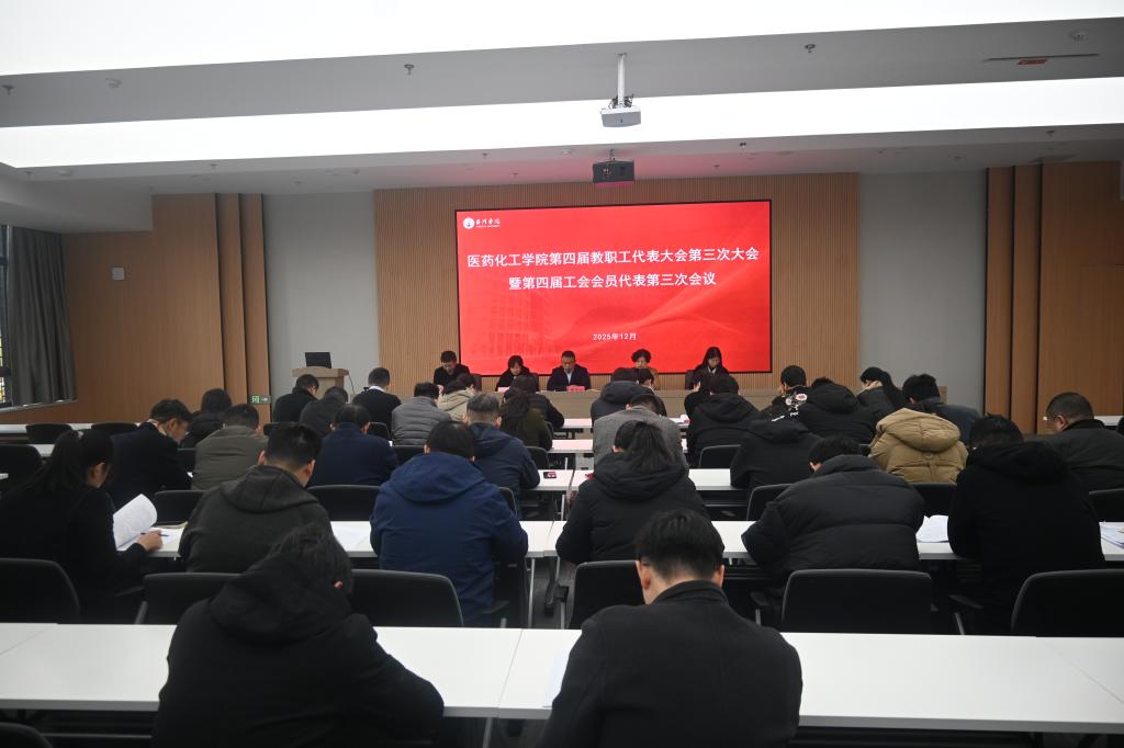 2025年12月25日,医药化工学院第四届第三次教职工代表大会暨第四届第三次工会会员代表会议在科技综合楼220会议室召开。会议由学院党委副书记刘贵花主持,学院党政领导、正式代表及列席代表出席。