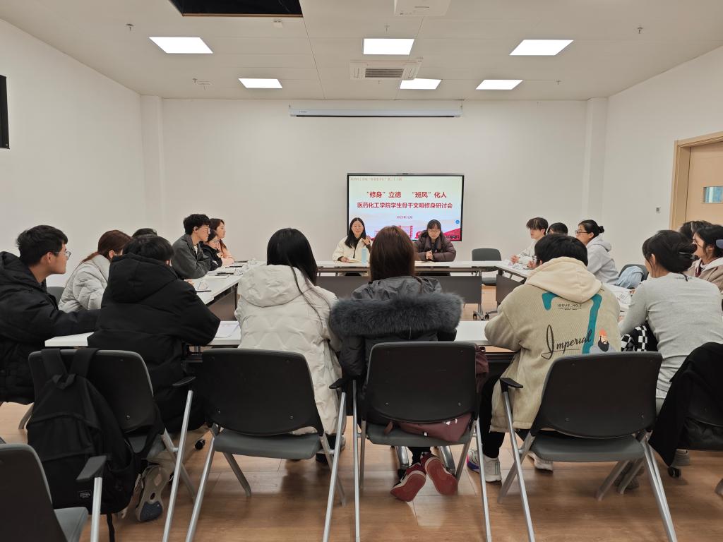 为进一步加强学生骨干队伍建设,深化文明修身教育,营造优良班风学风,12月29日下午,医化学院在科技综合楼230会议室举办第二十八期“青春思享汇”文明修身主题教育座谈会。学院党委副书记刘贵花、年级辅导员及2025级主要学生干部共同参会。