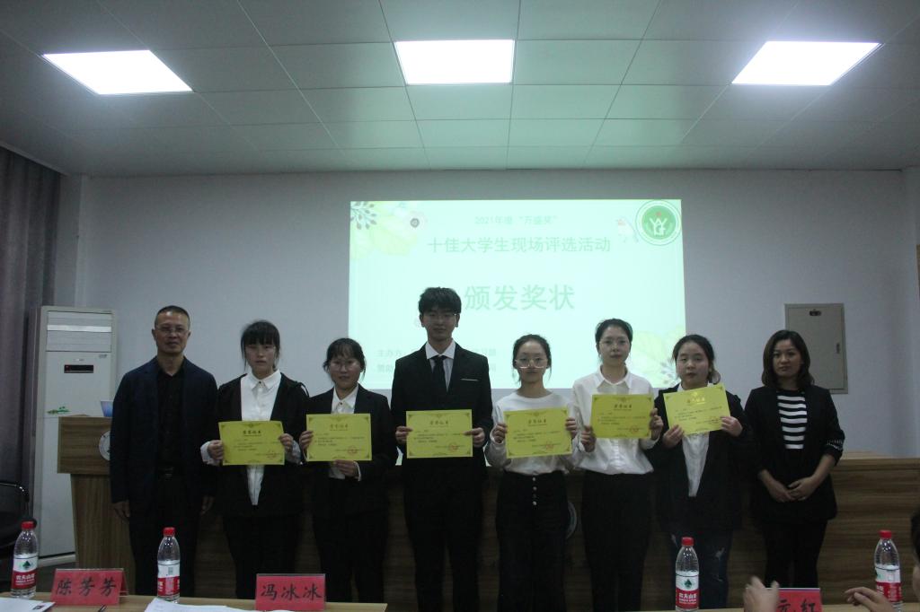 共计有16位学生经个人自荐,学院团委资格审查环节后参与到此次现场评选活动中。活动现场的嘉宾评委团成员由学院党委书记徐元红、万盛股份事管理部经理兼人才发展部经理陈芳芳、学院党委副书记吴高都、万盛股份人事管理部副经理冯冰冰、万盛股份招聘专员陈琳怡、学工办主任刘贵花、学院团委指导老师潘汉雄、班主任代表郝飞跃和谢奔组成。