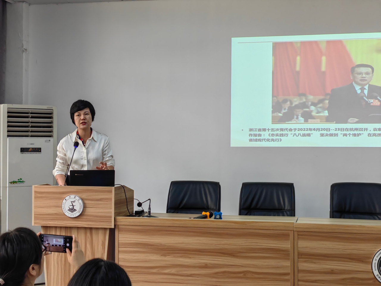 会上,徐元红从省第十五次党代会的重要意义、深刻内涵以及如何持续抓好省党代会精神贯彻落实等方面进行详细解读和部署。她表示,省第十五次党代会紧扣浙江未来发展、人民群众关心的重大问题,聚焦“两个先行”,明确了未来五年乃至更长一个时期浙江发展的战略部署。她指出,全院教职工要提高政治站位,进一步学懂弄通“8个方面规律性认识”,笃行“两个维护”的政治宣言,践行“伟大思想”的行动纲领,锚定“两个先行”的历史航标,增强贯彻落实思想自觉、政治自觉和行动自觉,以求真务实的精神状态用心领悟、用力实践。