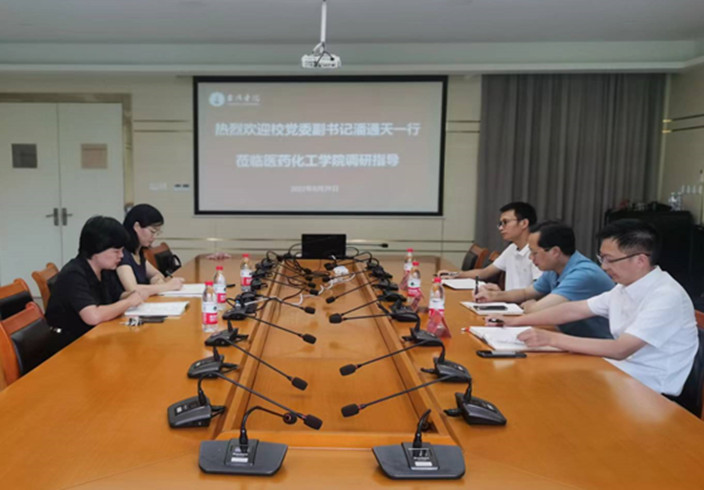 8月29日,校党委副书记潘通天,校党委委员、宣传部部长金松,校组织部副部长谢志昂一行来到医药化工学院调研指导新学期工作。