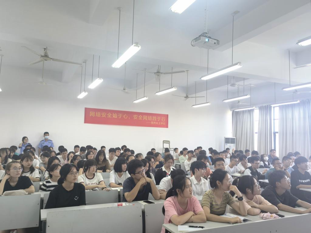 为加强网络安全教育,帮助学生树立安全防范意识,9月8日,医药化工学院开展网络安全主题班会。班会现场特邀葭沚街道派出所民警出席并宣讲反诈指南。学院党委副书记刘贵花、全体辅导员、2022级新生参加班会。