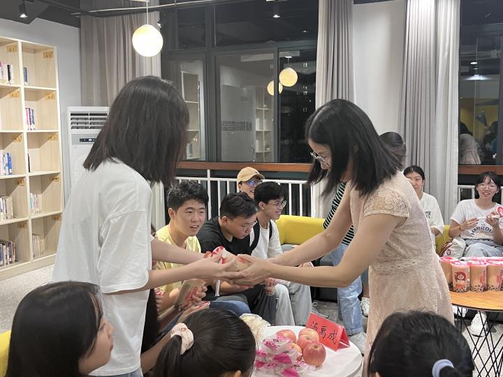 茶话会伊始,刘贵花表达了对同学们的热烈欢迎。她表示,开学之初恰逢中秋佳节,同学们大多是初次离家独自过节,希望通过本次茶话会能缓解他们的思乡之情,在台院这块热土上感受到医化大家庭的温暖。品月饼、喝奶茶、谈习俗……大家在温暖愉悦的氛围中畅所欲言,分享了各自家乡的美食美景、民俗风情以及成长经历,现场此起彼伏的欢声笑语拉近了师生间的距离。老师们则通过身边的人和事等巧妙的方式向同学们介绍学校的规章制度,要求同学们践行“澡身浴德,修业及时”的校训精神,立大志、明大德、成大才、担大任,做“笃学笃行,求实求进”的有为青年。