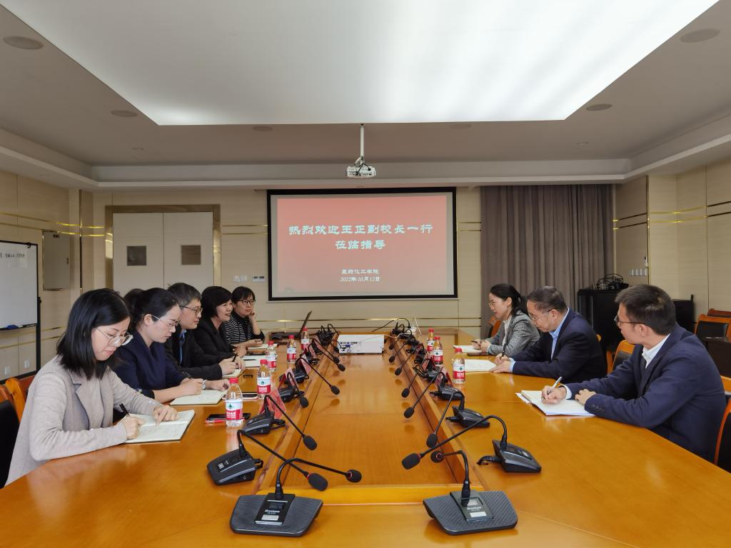 10月12日上午,校党委委员、副校长王正率组织部副部长谢志昂、人事处副处长徐璐洁走访医药化工学院调研指导。学院领导班子成员参加调研活动。