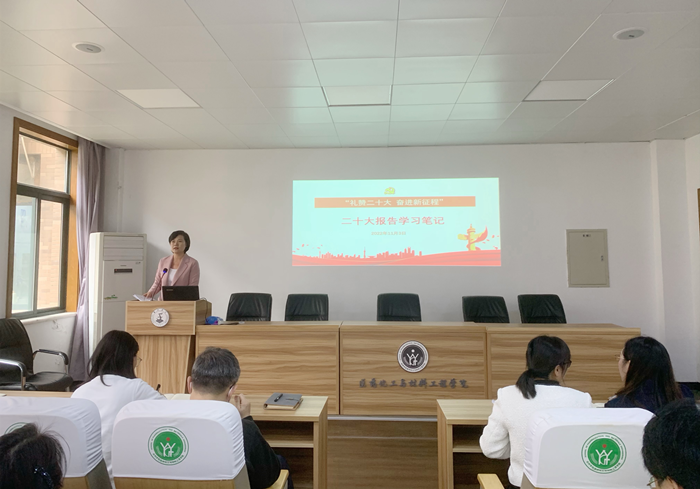 11月3日下午,医药化工学院在学院会议室召开党的二十大精神专题学习会。学院党委书记徐元红作主题宣讲,学院院长吴劼等党政班子成员出席,全体教职工参加。