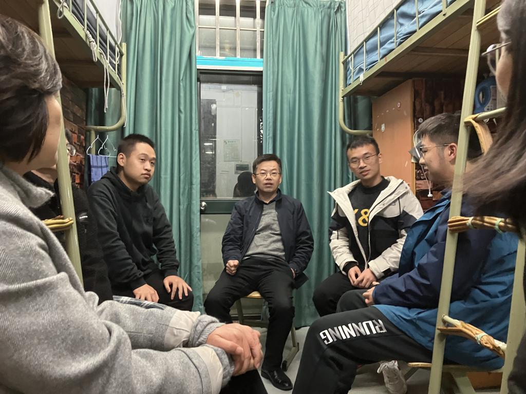12月2日晚,校党委委员、纪委书记李伟明深入医药化工学院学生寝室走访调研,与学院学生亲切交流座谈。学院党委书记徐元红、副书记刘贵花陪同走访。