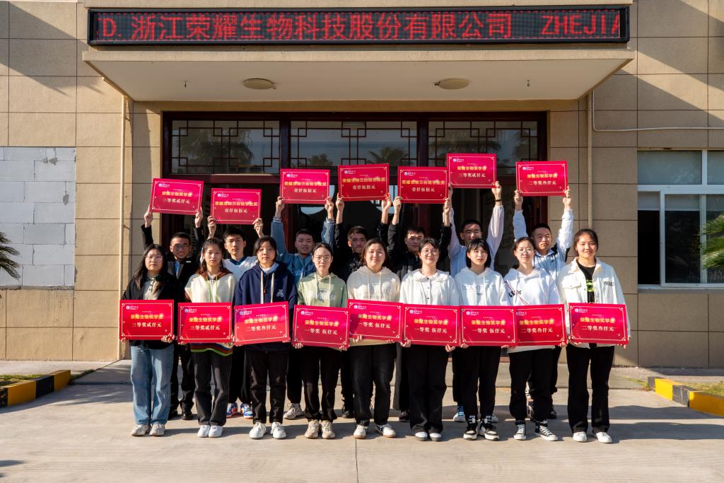 为发挥优秀学生的模范表率作用,树立先进典范,创建优良学风,激励学生刻苦钻研、踔厉奋进。3月10日,在浙江荣耀生物科技股份有限公司举行“荣耀生物”奖学金颁奖仪式。出席颁奖仪式的有学校党委委员、副校长王正,荣耀生物公司董事长陈仁尔、医药化工学院党委书记徐元红、教授、博士等,颁奖仪式由医药化工学院党委副书记书记刘贵花主持。