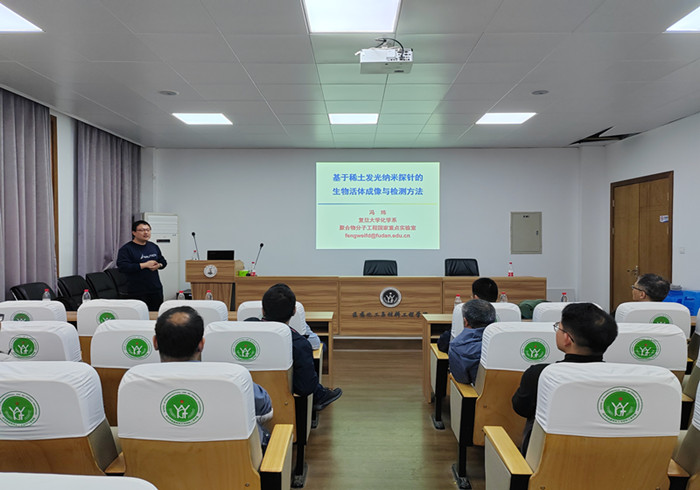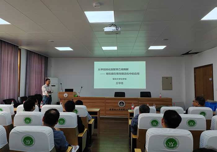 王华冬教授作题为“有机硼在惰性键活化中的应用”的学术报告。他向在座教师展示了超强路易斯酸性的有机硼化合成新方法,及有机硼在甲烷的硼基化反应、聚苯乙烯的高选择性氢化降解等转化中的应用。陆平教授作题为“张力环的立体选择性构建及应用”的学术报告。他们课题组实现了一系列生物活性分子以及天然产物的全合成。此外,还开展了可见光诱导、手性路易斯酸催化下的(杂)芳烃的不对称立体选择性[2+2]-环化反应研究。最后冯玮教授作题为“基于稀土发光纳米探针的生物活体成像与检测方法”的报告,向在座教师展示了其课题组近期在稀土发光纳米材料的设计合成及应用研究方面取得的一系列成果,如利用纳米探针的小尺寸优势和活体定量检测技术对疾病进展、光热治疗、药物治疗等重要生物医学过程中的微环境信息进行了提取,获取了传统方法难以感知的新监测数据等。