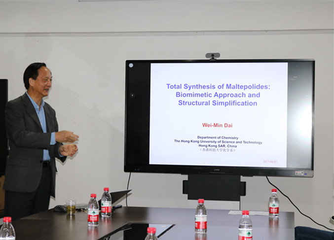 4月7日上午,香港科技大学、浙江大学“教育部长江学者特聘教授”戴伟民应医药化工学院邀请,来第二会议室作题为“Total Synthesis of Malterpoides: Biomimetic Approach and Structural Simplification”的学术讲座,院长吴劼主持,相关专业教师参加。