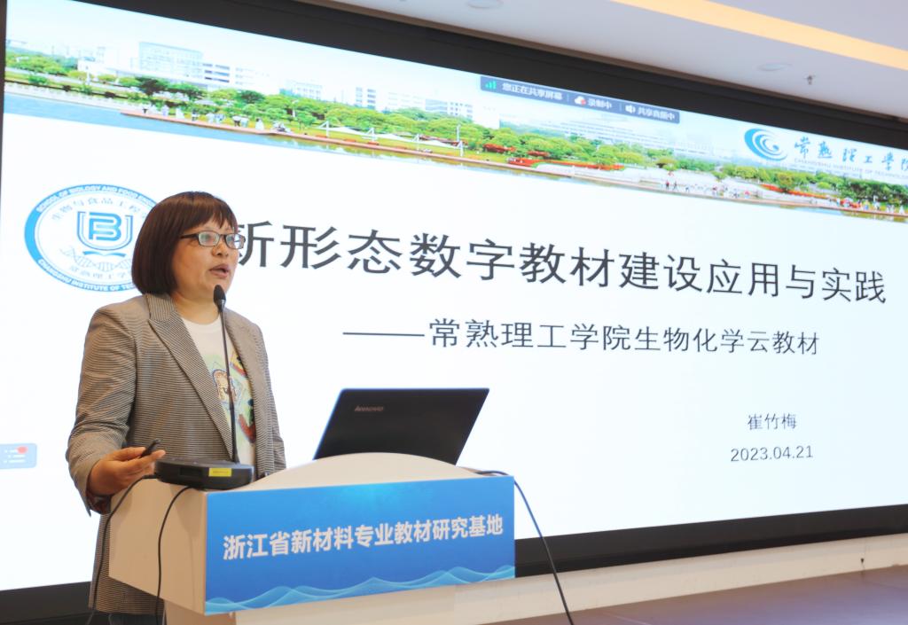 厦门大学朱亚先教授作《化学专业教材建设现状与建议》线上主题报告;浙江大学课程教材研究所长郑汉阳作《当前教材工作形势与我们的任务》主题报告;常熟理工学院崔竹梅副教授作《新形态数字教材建设应用与实践》主题报告;浙江省新材料专业教材基地负责人金燕仙教授作《台州学院-浙江省新材料专业教材基地情况与建设规划》主题报告。