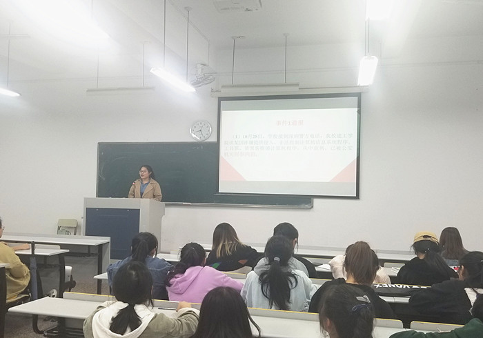 10月30日,各班主任组织召开了安全教育主题班会,并采取“一对一”谈心谈话形式对班级可能存在的风险及隐患进行了全面排查,各年级辅导员通过发放《风险告知书》的方式再次教育引导全体学生加强安全防范意识和法律法规意识。