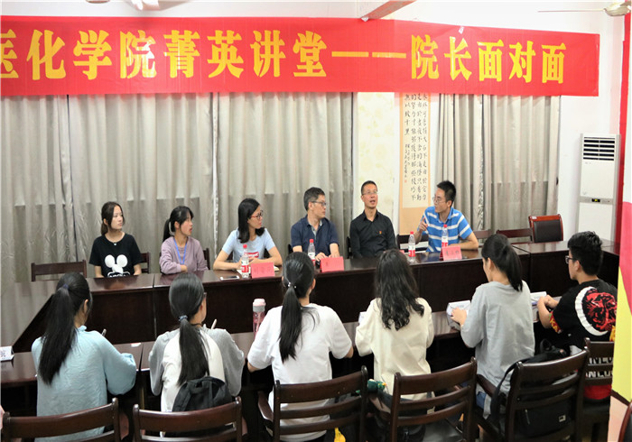 9月25日晚,医化学院在11号公寓学生活动中心开展了“医化学院菁英讲堂--院长面对面”的活动。医化学院院长吴劼受邀作为主讲嘉宾,辅导员与18级的二十余位学生代表参与,党总支副书记吴高都主持座谈会。