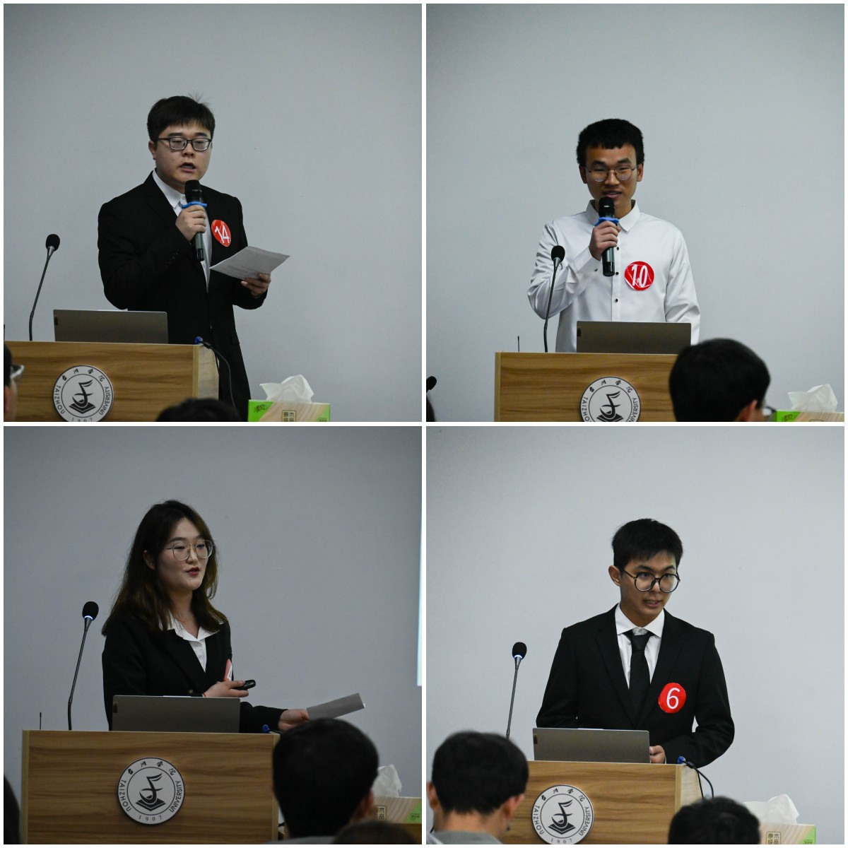 经个人自荐、学工办资格审核后,来自各班级的14名学生围绕思想成长、专业学习、社会实践、科研竞赛、兴趣爱好等方面,展示了自己丰富多彩、追求卓越的大学生活,流畅地回答了评委们的提问。他们中既有绩点高达4.11的学霸,也有致力于公益事业的爱心传播者;既有知行合一的科研新秀,也有多才多艺文体双全的卓越学子。候选人振奋人心的故事,慷慨激昂的话语,勇于创新和敢于挑战的精神,深深感染了大家,赢得全场热烈的掌声。