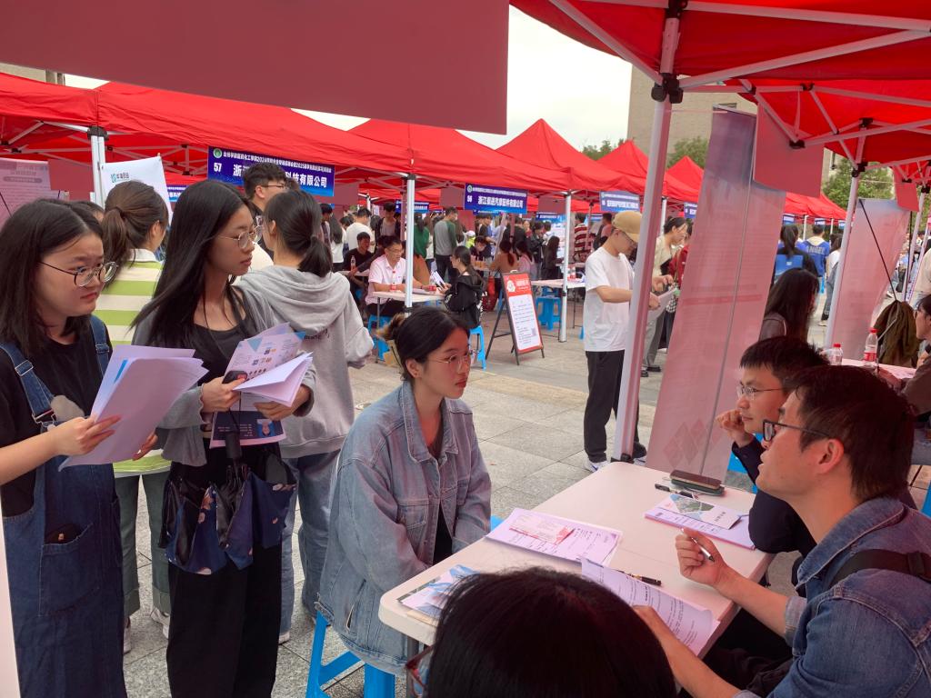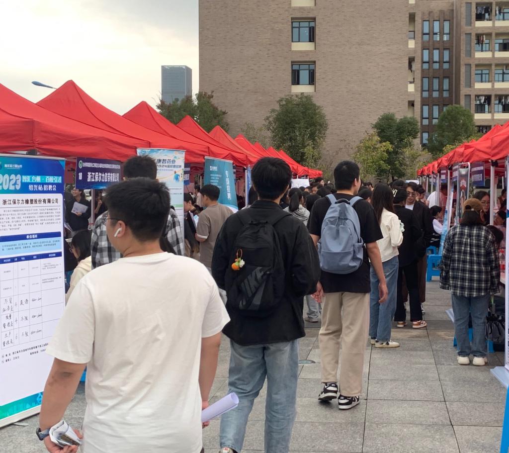 经过前期线上线下大力宣传,本次招聘会共吸引了华海药业、九洲药业、海正药业、伟星新材、爱仕达等90余家用人单位。招聘会现场反响热烈,不少技术专业型岗位以及就业发展前景较好的岗位前已经排起了长队,人头涌动。同学们们手持精心准备的简历,穿梭会场,不时停步驻足,主动寻找心仪的企业与岗位,与招聘人员相互沟通交流。各用人单位代表向同学们介绍了企业的基本情况、人才需求等,并围绕职业发展、相关技能要求以及薪酬待遇等同学们关心的问题进行了详细解答。