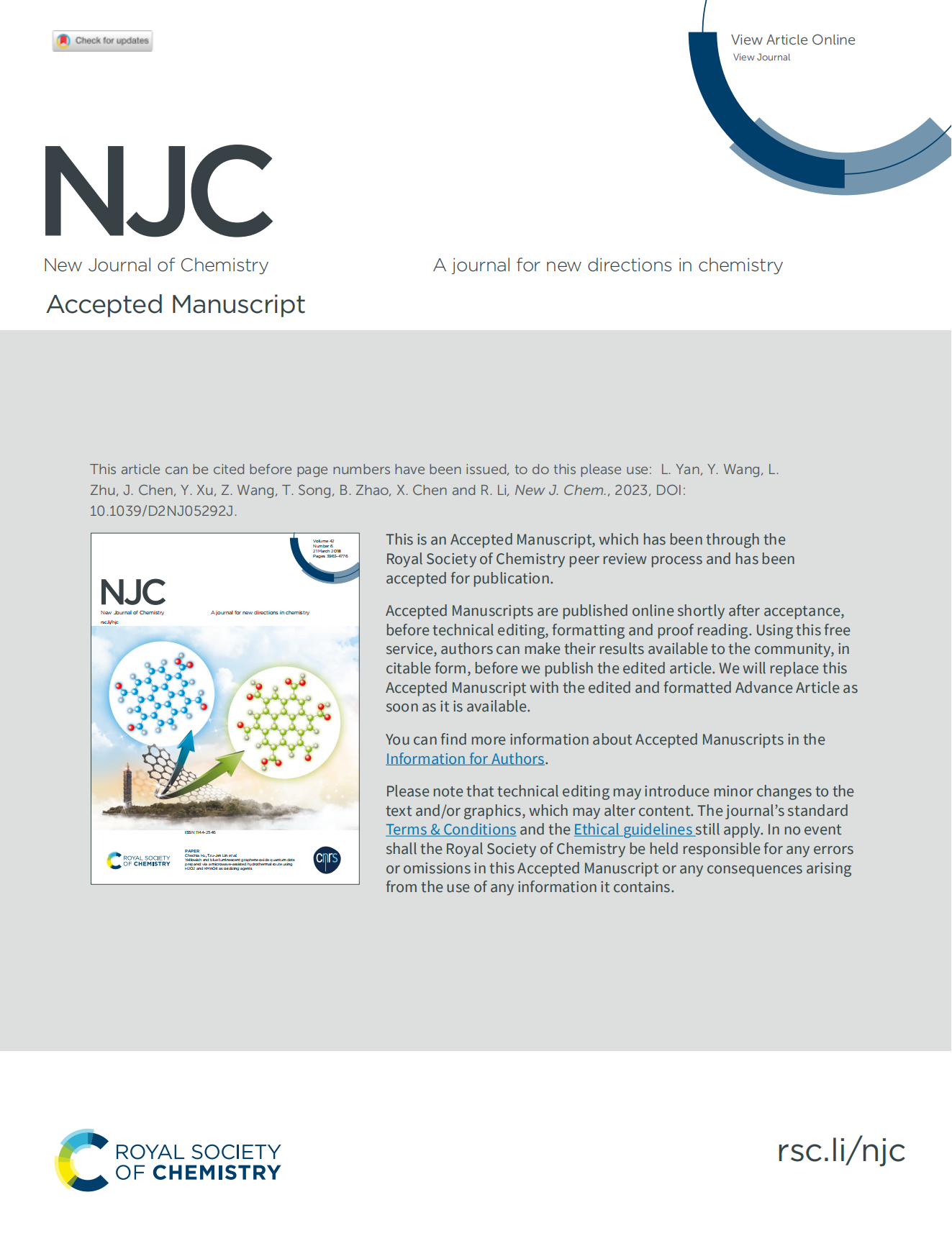 恭贺闫乐乐、王宇瑶、朱丽娜、陈君杰、徐于洋、王子鉴、宋通洋、赵波、陈先朗、李嵘嵘的论文Sn regulates the electronic structure and metal particles of Pd to improve the hydrogenation performance of 4-nitrophenol发表在《New Journal of Chemistry》期刊上。