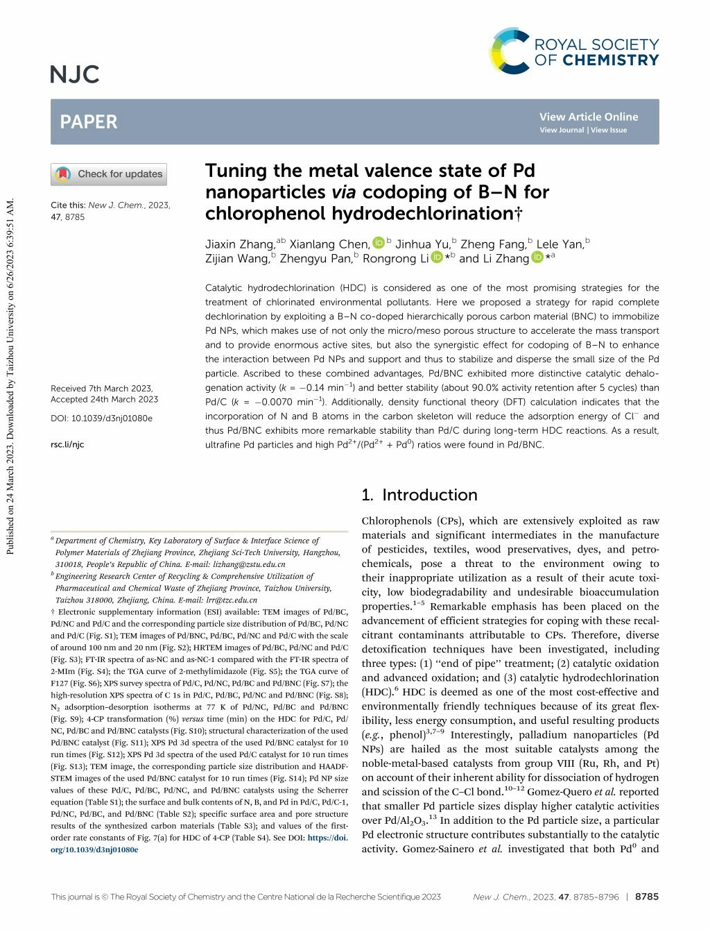 恭贺张嘉馨、陈先朗、方正、闫乐乐、王梓鉴、李嵘嵘的论文Tuning the metal valence state of Pd nanoparticles via codoping of B-N for chlorophenol hydrodechlorination发表在《New Journal of Chemistry》期刊上。