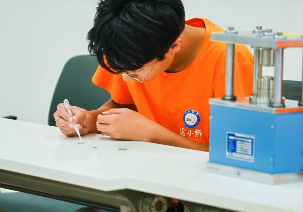 活动的高潮部分是动手实践环节。在教师的悉心指导下,学生们跃跃欲试,分组走上操作台。他们小心翼翼地组装材料,亲手体验了制作微型纽扣电池的全过程。当看到一枚枚由自己完成的电池时,他们脸上洋溢着满满的成就感。方寸之间的“能量工厂”,不仅是科学原理的实践印证,更是动手能力和协作精神的生动课堂。
