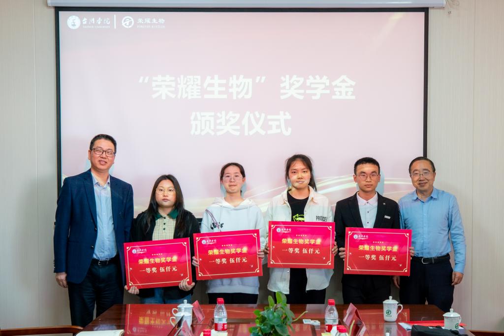 为发挥优秀学生的模范表率作用,树立先进典范,创建优良学风,激励学生刻苦钻研、踔厉奋进。3月10日,在浙江荣耀生物科技股份有限公司举行“荣耀生物”奖学金颁奖仪式。出席颁奖仪式的有学校党委委员、副校长王正,荣耀生物公司董事长陈仁尔、医药化工学院党委书记徐元红、教授、博士等,颁奖仪式由医药化工学院党委副书记书记刘贵花主持。