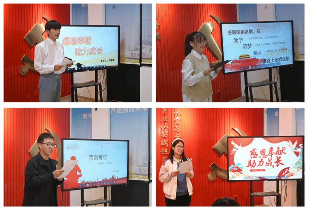 参赛选手围绕演讲主题,从人生哲理、亲身经历、成长体验等方面分享了个人观点和感悟。他们感谢党的政策方针引领着他们成为了奋发有为的新时代青年;感谢国家的相关政策帮助他们渡过了生活中的难关和坎坷;感谢学校提供舒适的生活学习环境,给予丰富的资源和平台,使得他们能够心无顾忌地追寻心中的理想。他们纷纷表示,一定会以更加积极的态度来面对学习和生活中的困难挫折,不断提升自己的能力和素质,传递更多的温暖和爱心,用自身的行动来回报国家与社会,将感恩奉献、自立自强的精神传承好、弘扬好、践行好。