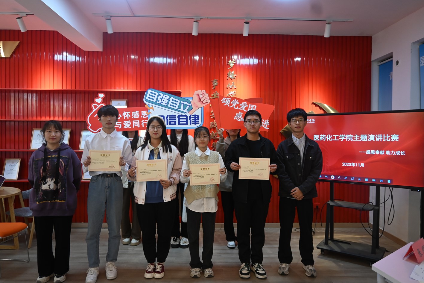 为深入学习贯彻全国、全省教育大会精神,培养学生感恩意识和自强自立精神,11月29日晚,医化学院在学院星火驿站举办“感恩奉献 助力成长”主题演讲比赛。辅导员潘晨驰、张朋及学生干部代表出席并担任评委。