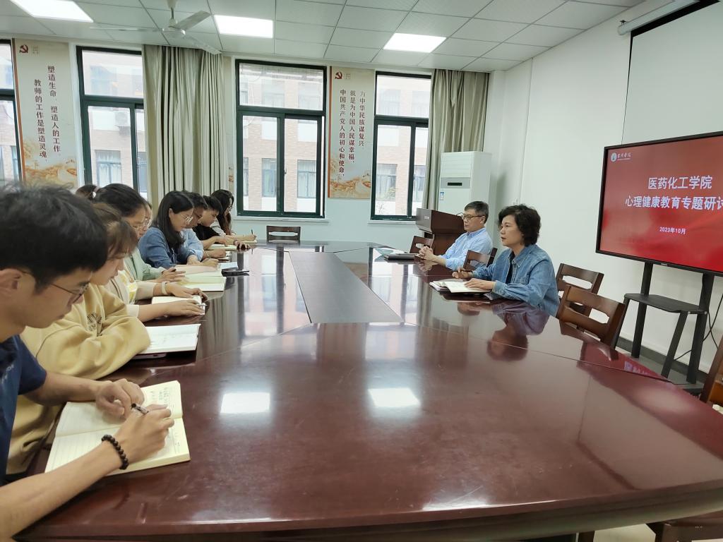 10月24日下午,医药化工学院召开2023年下半年心理健康教育专题研讨会。学院党委委员、全体辅导员、研究生工作管理人员参加会议,学院党委副书记刘贵花主持会议。