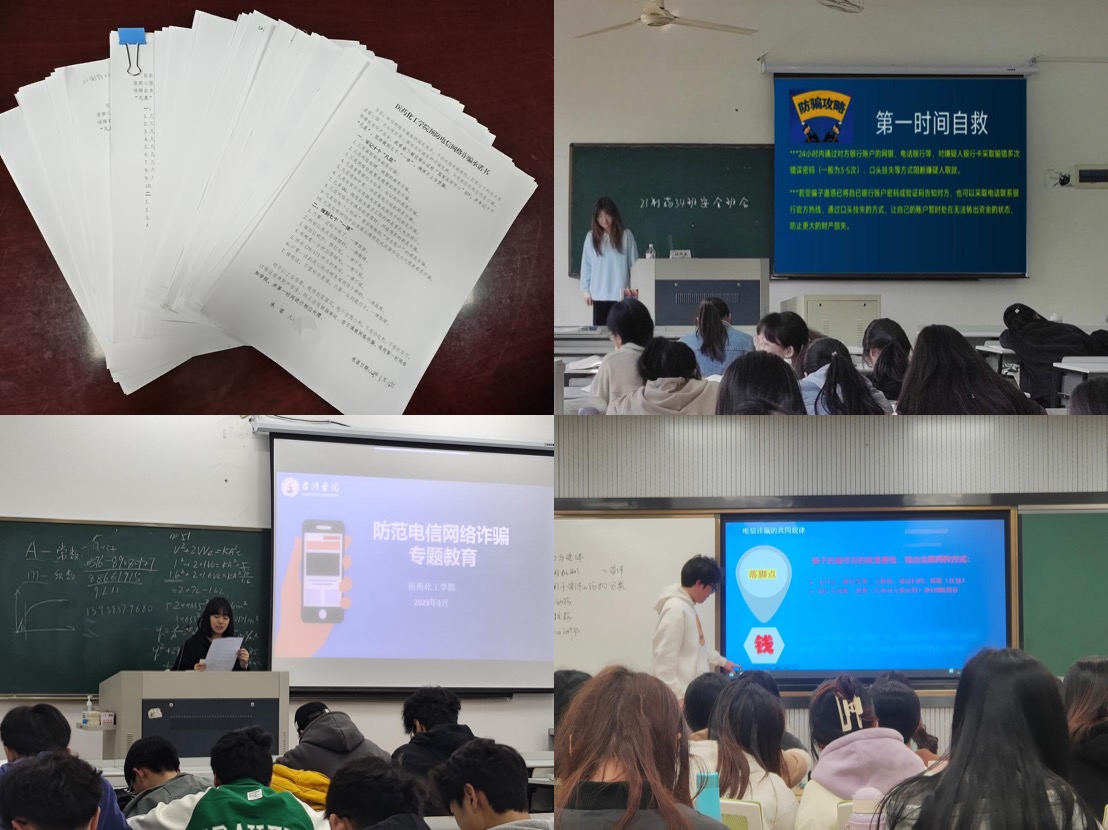 本次班会紧紧围绕“国家安全”、“网络安全”、“寝室安全”、消防安全”、“实验室安全”、“防骗反诈”等方面展开。各安全信息员首先强调了安全稳定的重要性,并结合校园安全案例和自己的所学所见所闻,就上述几个安全教育领域进行详细讲解,警示同学们要提高思想认识,加强防范意识,提高处置能力。班内同学展开小组讨论,同学们围绕大学生应必备哪些能力、应该怎么做、学校还需加强哪些方面的安全措施等展开热烈交流和讨论。班会还就预防电信网络诈骗进行专题教育,并且组织班级学生共同学习了《医药化工学院校园安全防范告知书》,签署了《医药化工学院预防电信网络诈骗承诺书》。