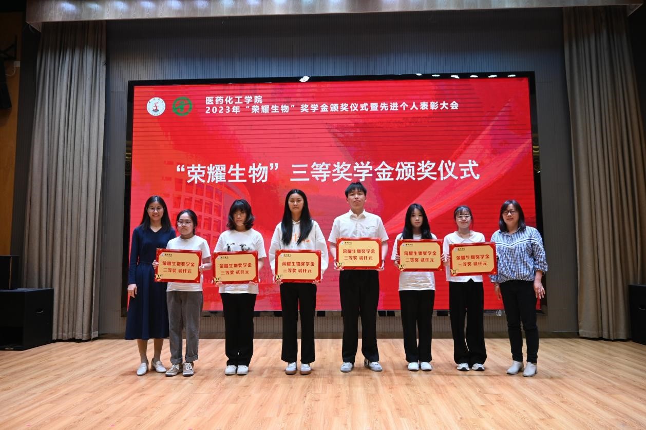 “荣耀生物”三等奖学金获奖学生领奖