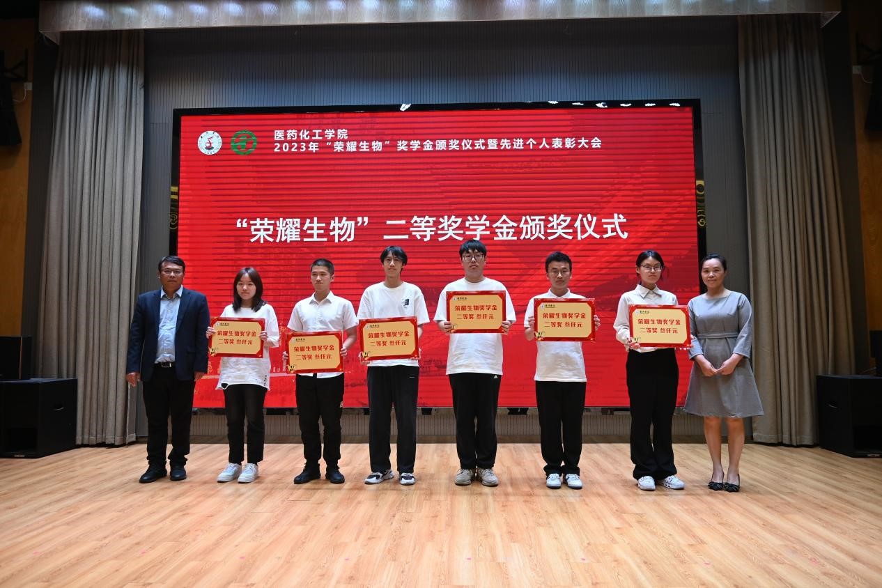 “荣耀生物”二等奖学金获奖学生领奖