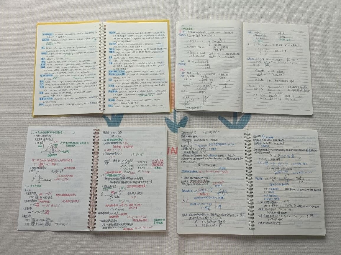 活动期间,同学们积极报名,踊跃参加,纷纷递交了自己独创的学习笔记,包含考研复习笔记、课堂学习笔记、英语单词笔记等。这些笔记不仅具有科学性、逻辑性和创新性,还充分展现了同学们对于相关知识的深入理解和热爱。有的采用数形结合的方法,对较难的知识点进行图解分析,以帮助更好地计算与理解;有的注重知识点的归纳总结,使用多色记录,不仅美观,还醒目明了;有的注重知识点的统筹分类,明确知识框架,区域划分明确、有条理。在评选过程中,评委们严格遵守公平公正原则,以笔记的美观度、内容的准确性和完整性、排版的规范性等方面为标准,最终评选出一等奖笔记3份,二等奖5份,三等奖7份。