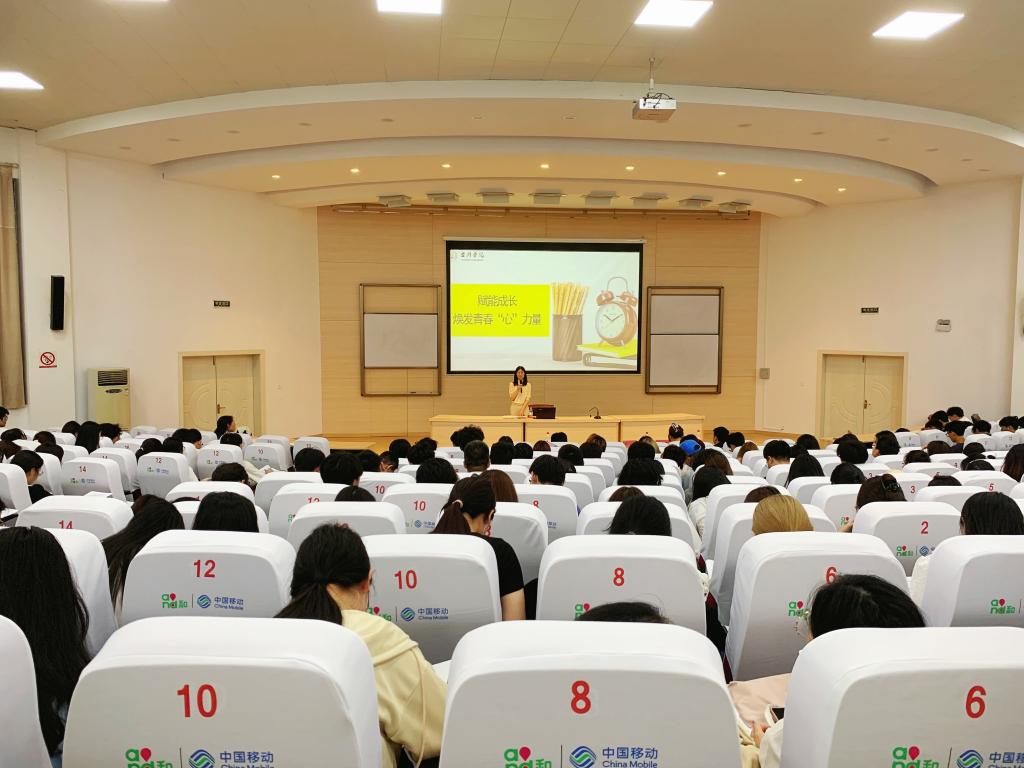刘贵花指出,“赋能”最早出现在积极心理学中,旨在通过言行、态度、环境的改变给予他人正能量,以最大限度的发挥个人才智和潜能。“心”力量是内心的力量、智慧的力量、向上的力量。这种力量能够让我们管理好自己,改变人生命运,成就生活的幸福和事业的辉煌。她表示,良好的心态和明确的职业规划能为我们点亮生涯之光,创造精彩未来。作为青年学生要向阳而生、逐光而行,坚守初心、保持恒心、痛下决心、树立信心,走下网络、走出寝室、走向操场、走进教室,为自己绘就人生精彩蓝图。平时学习生活中要合理规划学习时间,制定科学的学习计划,避免临时抱佛脚;养成健康生活方式,保持充足的睡眠、均衡的饮食和适度的运动。建立社交支持系统,与同学、老师和家人建立良好的沟通关系,分享心情、获取支持;及时寻求专业帮助,如果出现情绪波动,第一时间去寻求专业心理医生的帮助。