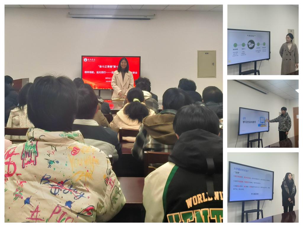 为发挥朋辈榜样作用,营造积极进取、奋发向上的学习氛围,12月19日下午,医化学院开展了以“榜样领航,追光而行”为主题的优秀学子经验分享会。学院党委副书记刘贵花出席,辅导员代表及24级学生代表参加活动。