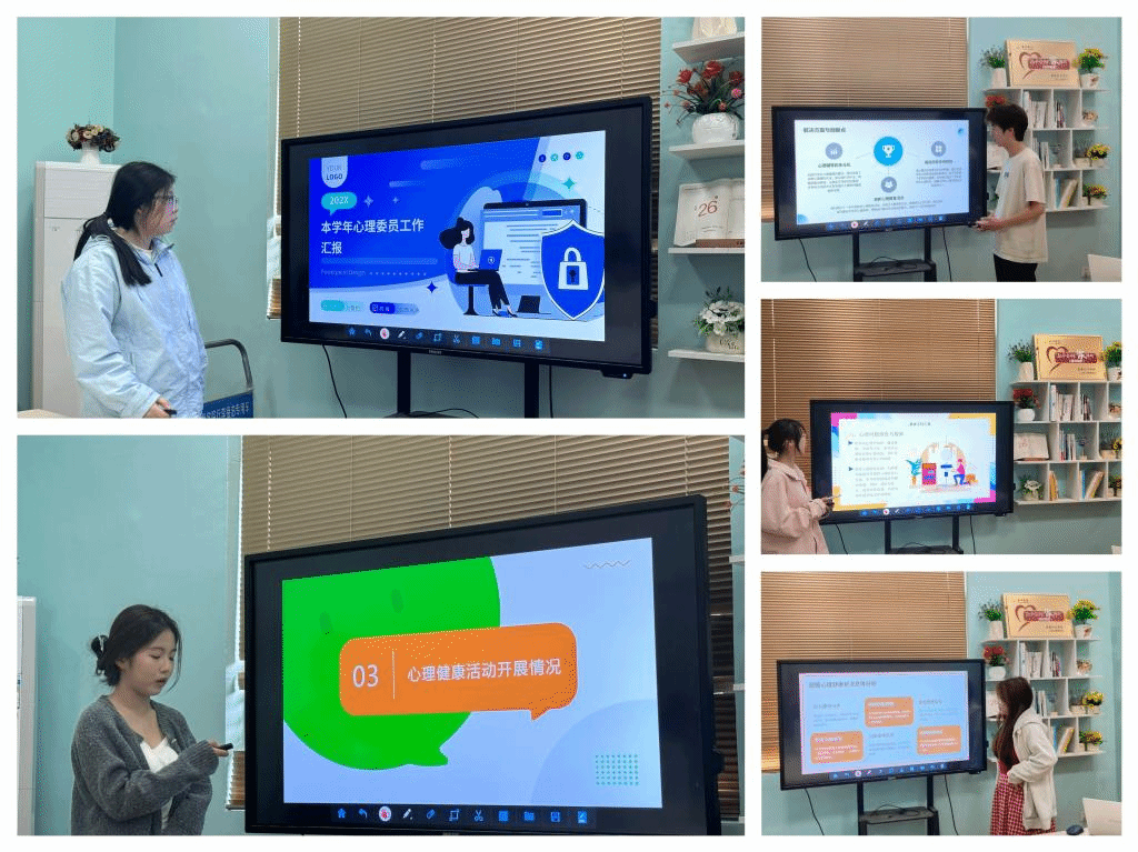 会上,各班心理委员结合自身工作实际,从助人情况、存在问题、工作建议、未来展望等方面进行汇报,并就如何更好地关注同学心理健康、开展心理健康主题活动、提升同学们对心理健康重视程度等方面展开了讨论。同学们纷纷表示心理委员是心理健康知识的传播者、心理波动信号的观察者,要不断加强和班级同学的沟通交流,以真诚态度提供情感支持,助力同学们纾解困惑。在后期的学习中将不断学习心理健康知识,努力提升专业素养,为同学们提供更好的帮助。