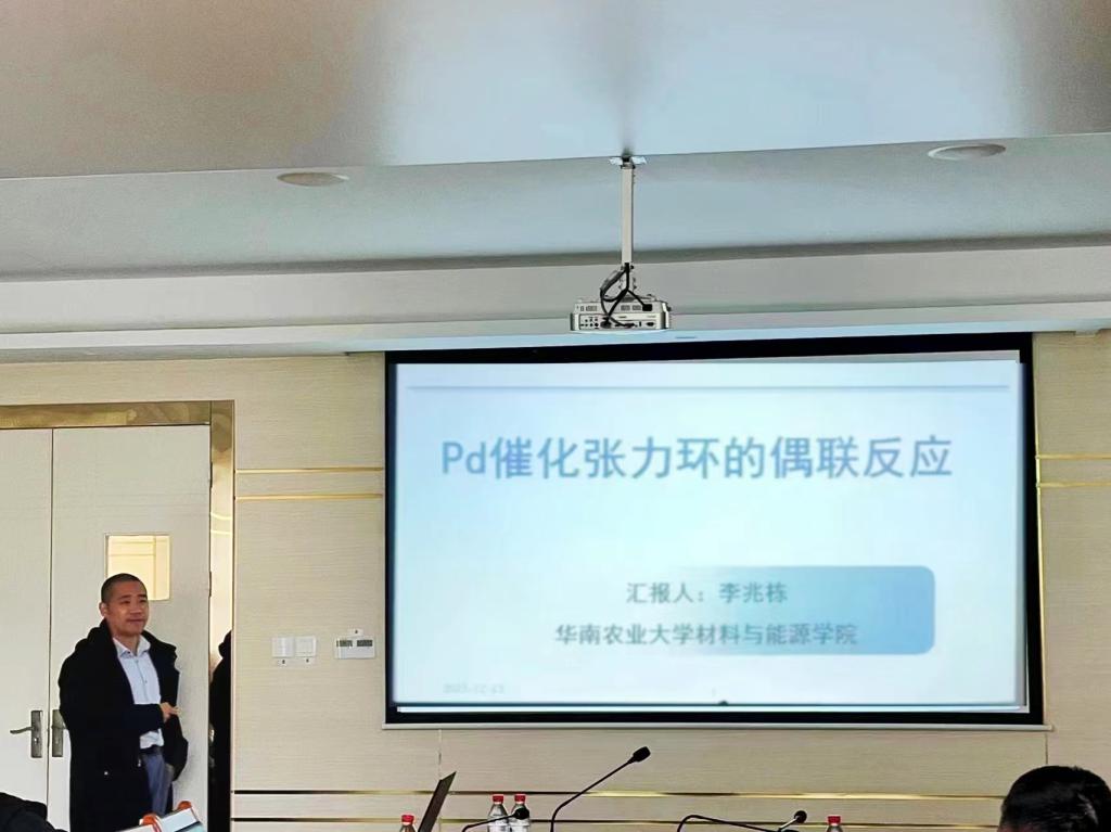 第三位报告人华南农业大学李兆栋教授介绍了他在“Pd催化的张力环不对称偶联反应”方面的研究。他重点讲述了氮杂降冰片烯和氧杂降冰片烯的高选择性偶联反应以及实现反应对映选择性控制的策略。