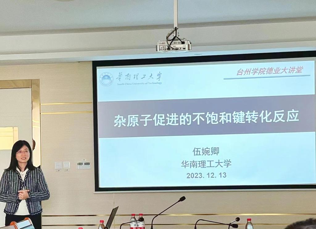 接着,华南理工大学伍婉卿教授作了“杂原子促进的不饱和键转化反应”的主题报告。她着重介绍了采用杂原子定位策略后成功拓展的高效、特色的不饱和键转化方法学。