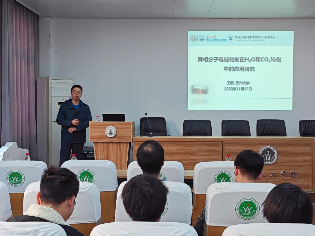 11月22日下午,医药化工学院邀请苏州大学化学系王炯教授作题为“异相分子电催化剂在H2O和CO2转化中的应用”的学术报告。本次报告由医药化工学院任世斌教授主持,相关专业的教师和研究生代表参加。
