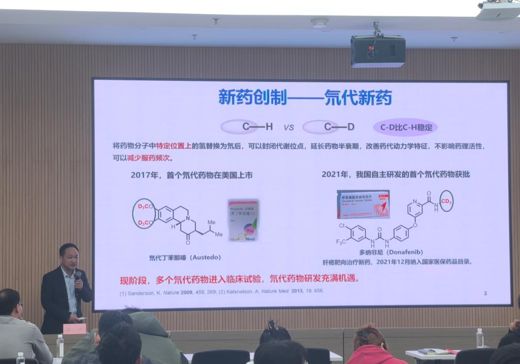 武汉大学李武教授作了题为“催化氘标记化学”的报告,重点介绍了以氘水为氘源的电催化和纳米催化氘标记新策略,通过可控裂解氘水原位生成活性氘物种,实现高选择性氘标记反应,有望显著降低氘标记化合物的合成成本,为药物化学、蛋白质组学等领域提供更广泛的应用基础。