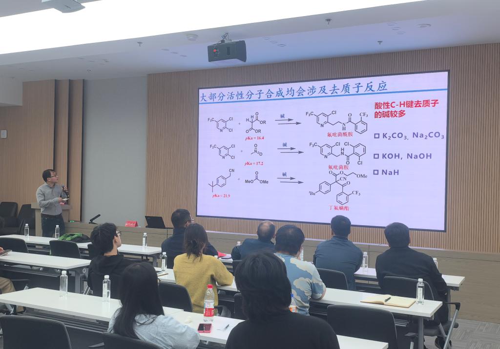 南京工业大学毛建友教授作题为“双金属碱在甲苯苄位去质子反应中的应用”的报告,分享了其团队开发的双金属碱。该碱可专一实现甲苯苄位C-H键去质子,成功应用于氰氟虫腙、丁氟螨酯等含苄基酮结构的农药合成,并拓展至芳香亲核取代反应和杂环化合物合成,为绿色农药合成提供了新方法。