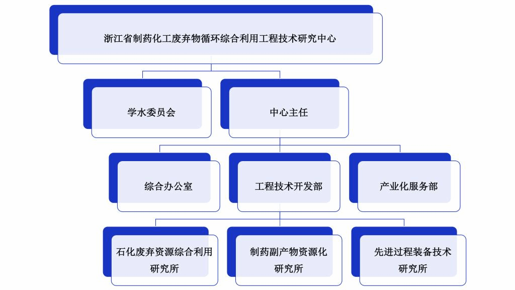 中心实行学术委员会指导下的中心主任负责制,下设综合办公室、工程技术开发部和产业化服务部。工程技术开发部下设石化废弃物综合利用研究所、制药副产物资源化研究所和先进过程装备技术研究所 ;产业化服务部主要承担成果孵化、推广和工程技术服务等方面的工作 ;综合办公室主要负责人力资源、财务、项目承接和知识产权保护等方面的工作。